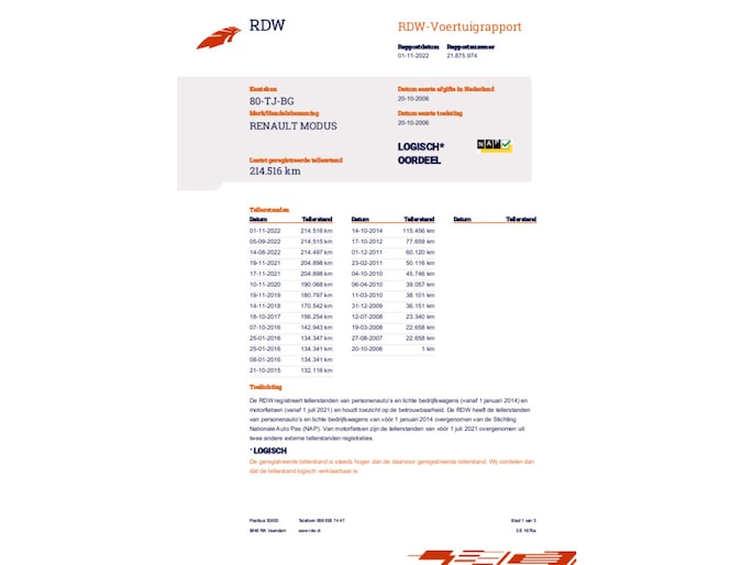 Kilometerstand gecontroleerd