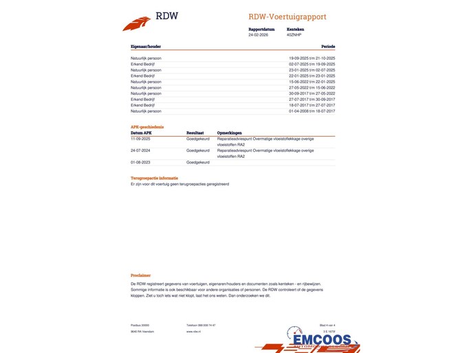 | Wegenbelasting/3mnd | € 172 - € 188 |
