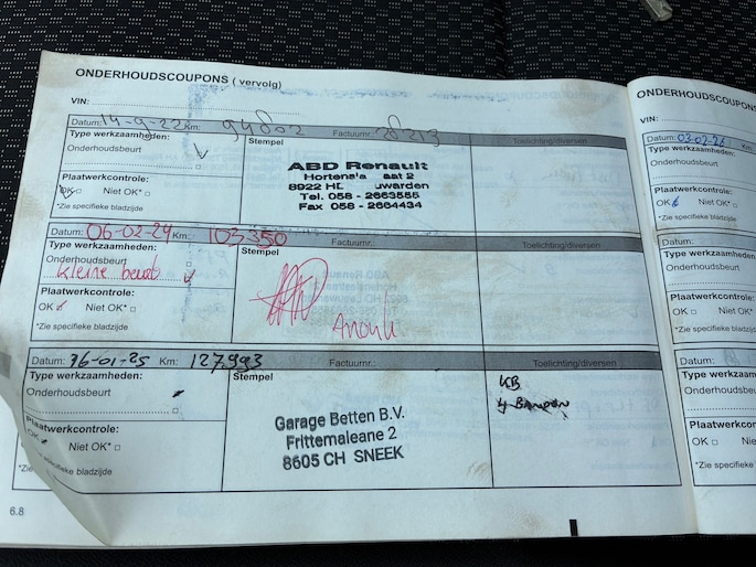 Onderhoudsboekjes: Aanwezig
