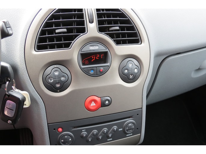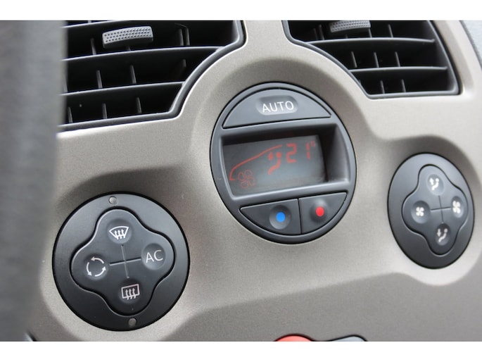 De bediening van het audio-installatiesysteem gebeurt met knoppen op het stuur. De automatische airconditioning zorgt voor een prettige binnentemperatuur. Inparkeren en uitparkeren kost geen enkele moeite dankzij de parkeersensoren. Achter het stuur van deze Renault bent u niet alleen. De auto kijkt als het ware met u mee tijdens de rit. De regensensor schakelt de ruitenwissers in als het nodig is en de automatisch inschakelbare verlichting doet de lichten voor u aan. Stel de cruise control in op de gewenste snelheid en u rijdt comfortabel en zuinig. En deze auto heeft ook centrale deurvergrendeling met afstandsbediening en boordcomputer als standaard uitrusting.