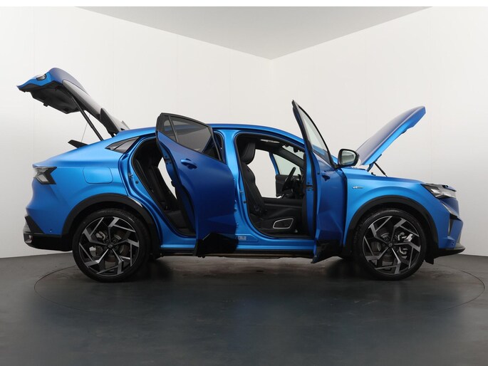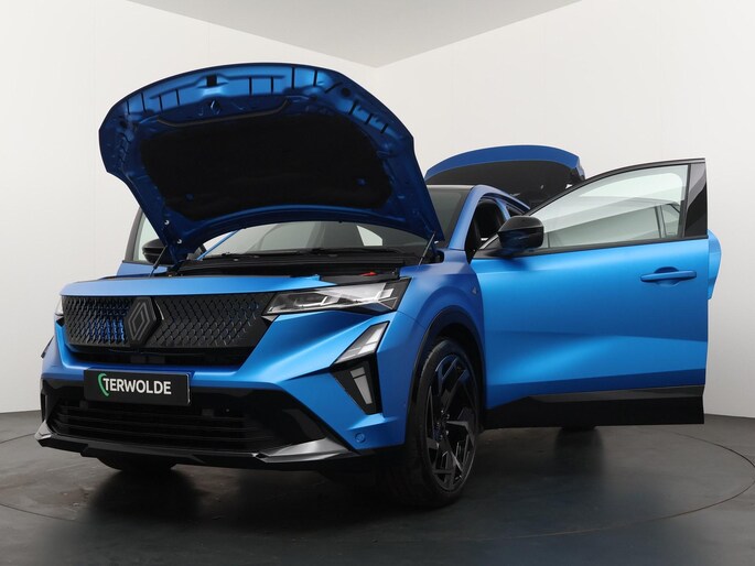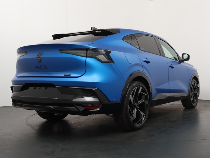 Het opvallende Bergblauw satijn met het kenmerkende dak in ster geeft deze Rafale een unieke uitstraling. Binnenin geniet je van luxe features zoals het Head-up Display, Apple CarPlay/Android Auto en een verfijnd interieur, speciaal ontworpen voor comfort en gebruiksgemak.