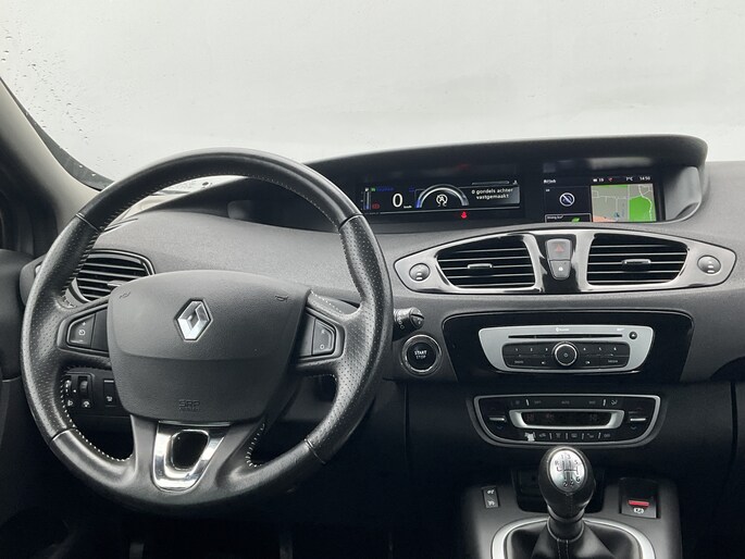 Met een gerust hart achteruitrijden? Dat kan, dankzij de achteruitrijcamera. U weet altijd waar u moet zijn, dankzij het navigatiesysteem. Tot de standaard uitrusting van deze auto hoort ook electronic climate control. Zonder uw ogen van de weg te halen bedient u de radio met de audiobediening op het stuurwiel. In deze Renault kunt u zich concentreren op het verkeer, terwijl de auto de omgeving voor u in de gaten houdt. Een automatisch inschakelbare verlichting zorgt dat de verlichting aangaat als het donkerder wordt - in tunnels bijvoorbeeld - en de regensensor schakelt de ruitenwissers in als het nodig is. U hoeft er niets aan te doen. U bent in deze Renault ook voorzien van cruise control, keyless entry, automatisch dimmende binnenspiegel, lederen stuur, boordcomputer en lederen versnellingspook.