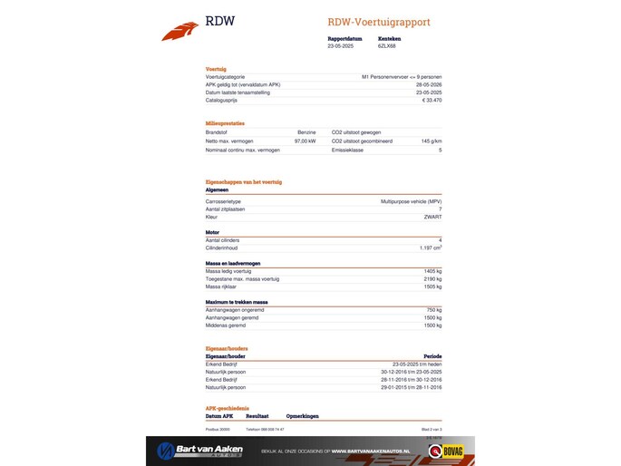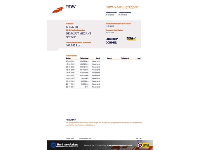 Kilometerstand gecontroleerd