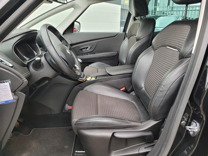 De slimme lay-out van het digitale dashboard zorgt voor een uitstekend overzicht onderweg. De auto is voorzien van een trekhaak en is een uitstekende caravantrekker. In deze Grand Scénic vindt u niet alleen schakelaars op het stuur om het full map navigatiesysteem te bedienen en het audiosysteem met DAB-ontvangst, maar er is ook spraakbediening. Bij de luxe van deze auto hoort ook automatische airconditioning. Parkeersensoren zijn een waardevolle toevoeging aan deze auto. De sensoren waarschuwen tijdens het parkeren en voorkomen schade aan de auto. Ook regensensor, cruise control, keyless entry, automatisch dimmende binnenspiegel, lederen stuur en boordcomputer horen tot de voorzieningen op deze auto.