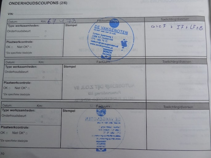 Onderhoudsboekjes: Aanwezig