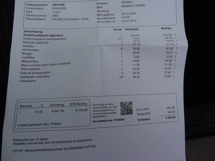 Je bod op Renault Scénic is geplaatst