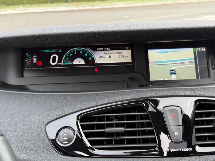 Er is geen bestemming die het aanwezige navigatiesysteem niet kent. Dat rijdt lekker! Nooit meer te warm of te koud. De electronic climate control zorgt altijd voor de temperatuur die u kiest. Even muten, een andere zender of track kiezen? Geen gerommel, het gaat moeiteloos met de audiobediening op het stuur. De parkeersensoren waarschuwen wanneer u te krap inparkeert of dat ene paaltje niet hebt gezien. Om de veiligheid onderweg te verhogen, heeft deze Renault zowel een automatisch inschakelbare verlichting als een regensensor aan boord, zodat hij zelf de verlichting en de ruitenwissers kan inschakelen. Ook cruise control, keyless entry, lederen stuur en lederen versnellingspook horen tot de voorzieningen op deze auto.