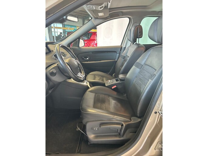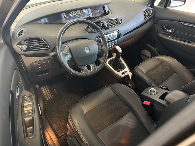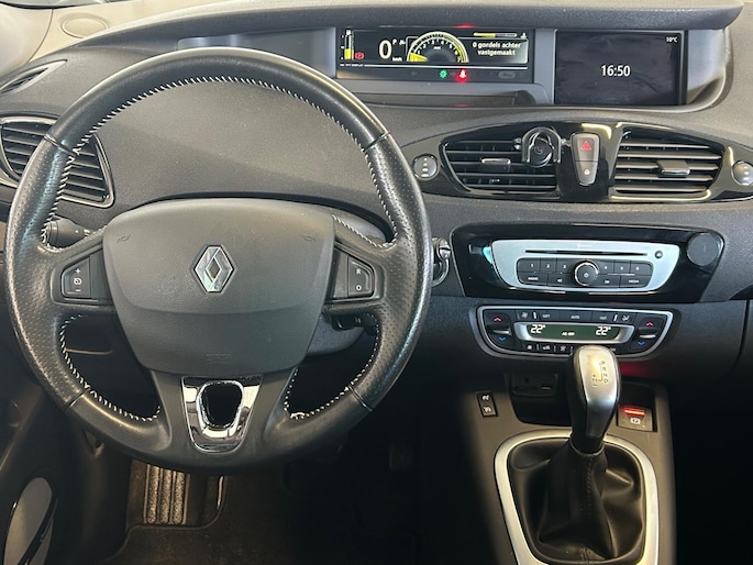 Selecteer uw reisbestemming en het navigatiesysteem brengt u snel waar u moet zijn. Het comfort wordt verhoogd door de aanwezige electronic climate control. Het luxeniveau in deze Renault is niet alleen gericht op comfort, maar ook op uw veiligheid. Tal van sensoren helpen u om de omgeving in de gaten te houden. De automatisch inschakelbare verlichting zorgt dat automatisch de verlichting wordt ingeschakeld als het donker wordt, wat bijvoorbeeld in tunnels erg handig is. En de regensensor zet de ruitenwissers aan zonder dat u eraan hoeft te denken. Er is ook cruise control aan boord, om met een constant tempo ontspannen en zuinig te rijden. Geen sleutel of afstandsbediening meer nodig om deze Renault Grand Scénic te ontgrendelen. De sloten gaan vanzelf open als u dichtbij komt, via de sensor van de keyless entry. Met automatisch dimmende binnenspiegel, lederen stuur, boordcomputer en lederen versnellingspook is deze auto helemaal compleet.
