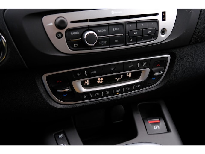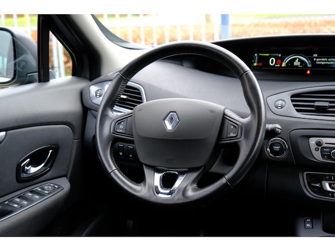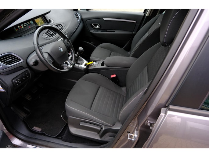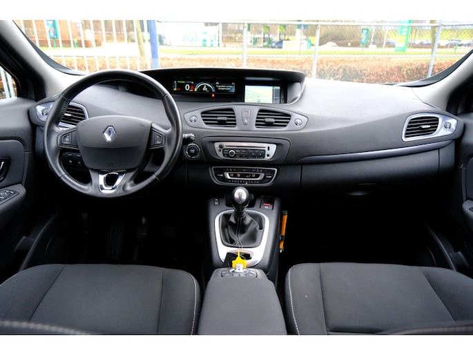De auto is voorzien van een trekhaak en is een uitstekende caravantrekker. Een goede veiligheidsvoorziening is de stuurbediening voor belangrijke functies. De auto is natuurlijk voorzien van een navigatiesysteem en het audiosysteem biedt glasheldere geluidskwaliteit. U verwacht natuurlijk electronic climate control in deze auto, en die is er dan ook. Parkeerplekken worden er niet ruimer op. Maar met de aanwezige parkeersensoren krijgt u deze Renault Scénic zonder problemen op z'n plaats. De automatisch inschakelbare verlichting en regensensor zorgen dat onderweg automatisch de verlichting en de ruitenwissers worden ingeschakeld. Daarmee nemen ze u veel werk uit handen. Ook cruise control, lederen stuur, centrale deurvergrendeling met afstandsbediening, boordcomputer en lederen versnellingspook zijn aan boord.