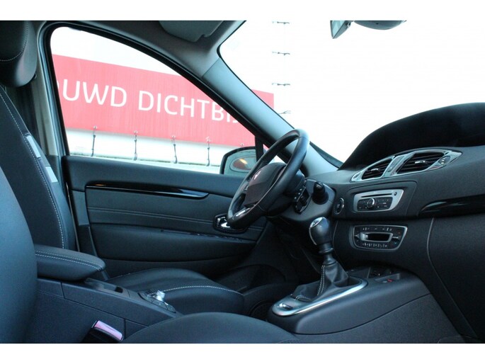Met de electronic climate control selecteert u de gewenste temperatuur. Het systeem doet de rest. Parkeersensoren ondersteunen u tijdens het in- en uitparkeren. De auto neemt u werk uit handen doordat hij zelf veel in de gaten houdt. Een regensensor en een automatisch inschakelbare verlichting nemen waar wanneer de ruitenwissers en het licht aan moeten. Met cruise control rijdt u rustiger en meer ontspannen, en bovendien zuiniger. Geen sleutel of afstandsbediening meer nodig om deze Renault Scénic te ontgrendelen. De sloten gaan vanzelf open als u dichtbij komt, via de sensor van de keyless entry. Deze auto is voorzien van navigatiesysteem, lederen stuur, boordcomputer en lederen versnellingspook.