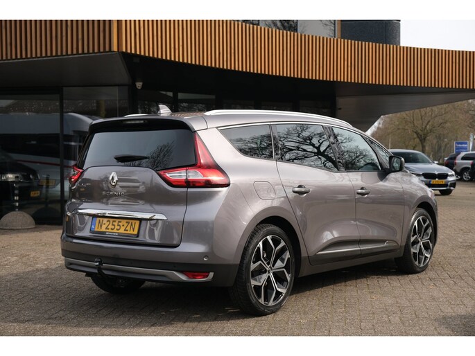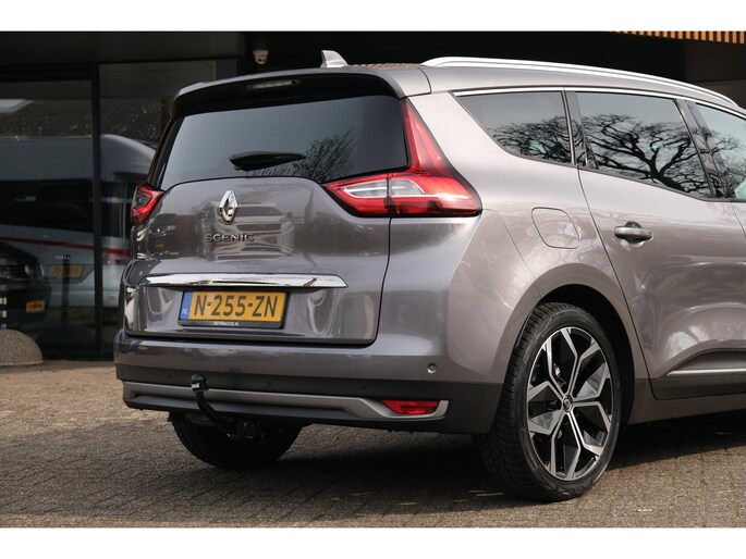 Voor extra comfort is deze Grand Scénic voorzien van zonneschermen voor de zijruiten, ideaal voor passagiers achterin tijdens zonnige dagen. De grote 20 inch lichtmetalen velgen geven de auto een krachtige en eigentijdse uitstraling. Daarnaast maakt de aanwezige trekhaak deze auto extra praktisch voor het meenemen van een fietsendrager of aanhanger.