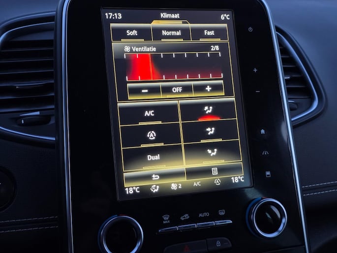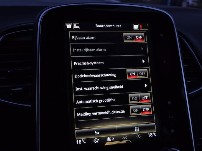 De nieuwste veiligheidssystemen komen in deze Renault SCENIC samen. In het instrumentarium kunt u bovendien de verkeersborden zien die u onderweg tegenkomt. Zo helpt deze Renault u om veiliger te rijden. Het Lane-keeping systeem zorgt voor een automatisch constante positie binnen de rijstrook. Afdwalen is uitgesloten. Bij concentratieverlies van de bestuurder geeft vermoeidheidsherkenning automatisch een waarschuwingssignaal. Verder is deze auto uitgerust met head-up display, dodehoekdetectie, accident avoidance system, hill hold functie, brake assist en bandenspanningcontrolesysteem.