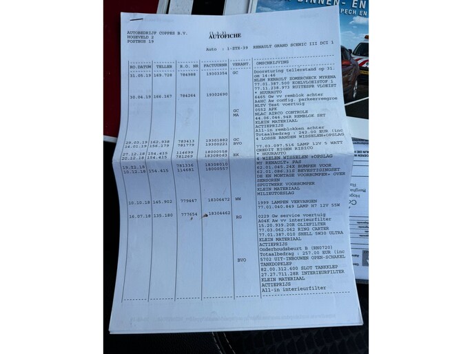 Met de electronic climate control selecteert u de gewenste temperatuur. Het systeem doet de rest. Het luxeniveau in deze Renault is niet alleen gericht op comfort, maar ook op uw veiligheid. Tal van sensoren helpen u om de omgeving in de gaten te houden. De automatisch inschakelbare verlichting zorgt dat automatisch de verlichting wordt ingeschakeld als het donker wordt, wat bijvoorbeeld in tunnels erg handig is. En de regensensor zet de ruitenwissers aan zonder dat u eraan hoeft te denken. Stel de cruise control in op de gewenste snelheid en u rijdt comfortabel en zuinig. Zoals u weet, liggen de autosleutels altijd onderin de boodschappentas die u sjouwt. Geen probleem bij deze Renault Grand Scénic. De token in uw jaszak wordt van dichtbij gesignaleerd door de keyless entry en alle sloten gaan automatisch open. De uitrusting van deze auto is met navigatiesysteem, automatisch dimmende binnenspiegel, lederen stuur, boordcomputer en lederen versnellingspook behoorlijk compleet.