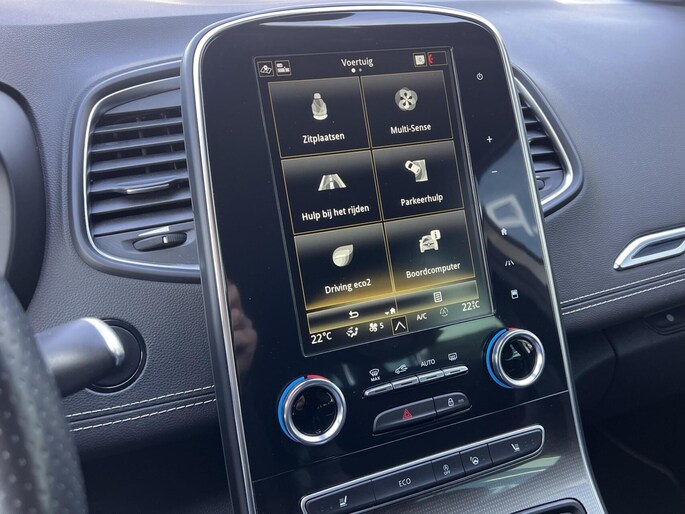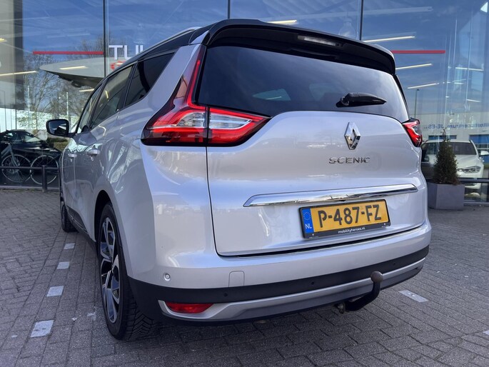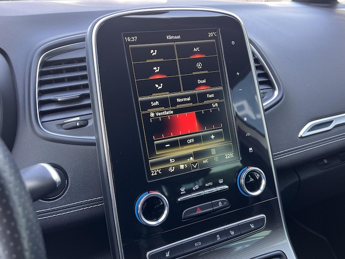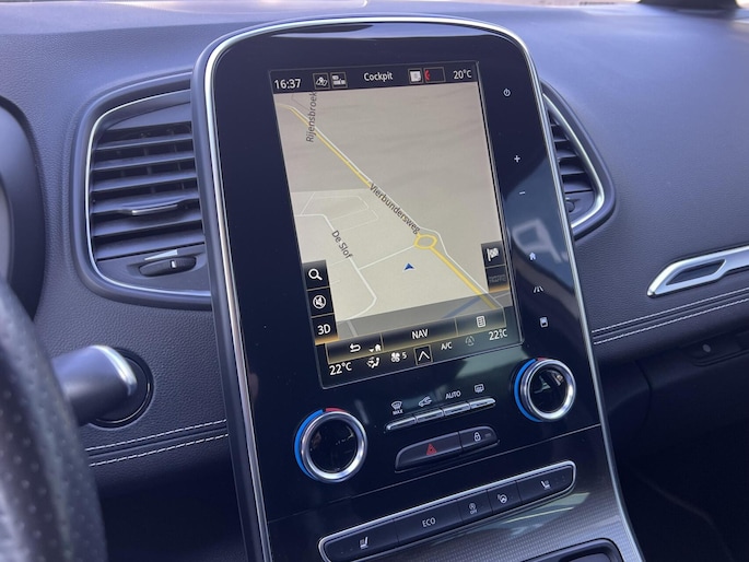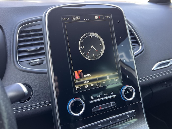 Voor het overzicht tijdens iedere rit is deze Renault Grand Scenic voorzien van een gemakkelijk afleesbaar digitaal dashboard. Bij het inparkeren hoeft u het laatste stukje niet te gokken: de achteruitrijcamera kijkt voor u uit. Adaptive cruise control is een comfortabele en veilige optie. Het systeem reguleert de snelheid en houdt automatisch afstand tot uw voorligger. De auto is voorzien van een trekhaak en is een uitstekende caravantrekker. Terwijl het full map navigatiesysteem de ideale route voor u uitstippelt, geniet u van de kwaliteit van het audiosysteem met DAB-ontvangst. De bediening is bovendien gemakkelijk via knoppen op het stuur of via spraak. Deze Renault is voorzien van WIFI-hotspot, automatische airconditioning, regensensor, keyless entry, automatisch dimmende binnenspiegel en lederen stuur.