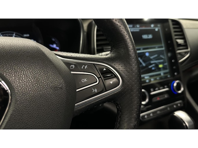 Soepel inparkeren in de krapste parkeervakken. De achteruitrijcamera maakt het mogelijk. Naast handmatige bediening kunt u belangrijke functies met uw stem bedienen dankzij de ingebouwde spraakbediening. Ook de akoestiek in de auto wordt optimaal benut door het high performance audiosysteem. Waarheen gaat de reis? Het full map navigatiesysteem brengt u trefzeker ter plekke! De kans op een kop-staart botsing wordt sterk gereduceerd door het systeem van achteropkomend verkeer waarschuwing. Ook is de Renault uitgerust met: automatische airconditioning, regensensor, cruise control, keyless entry, automatisch dimmende binnenspiegel en lederen stuur.