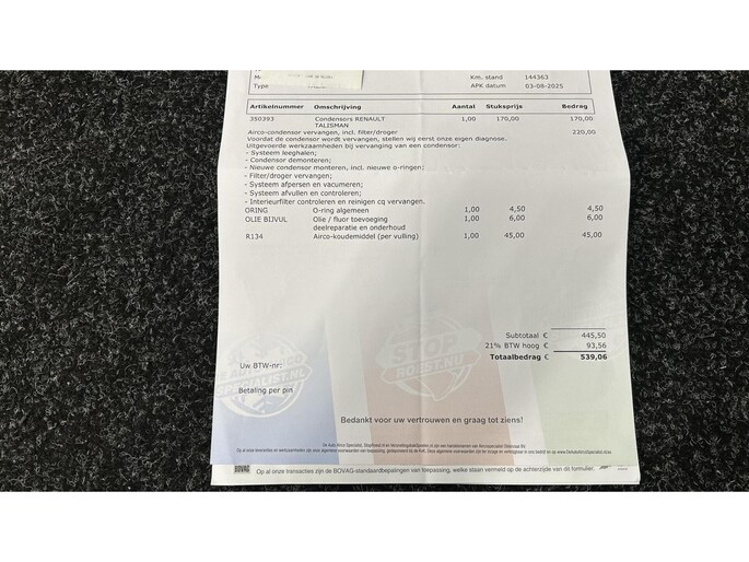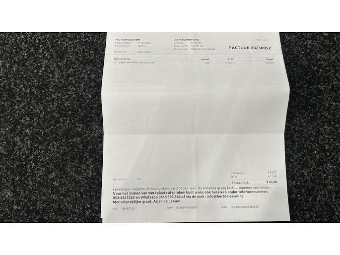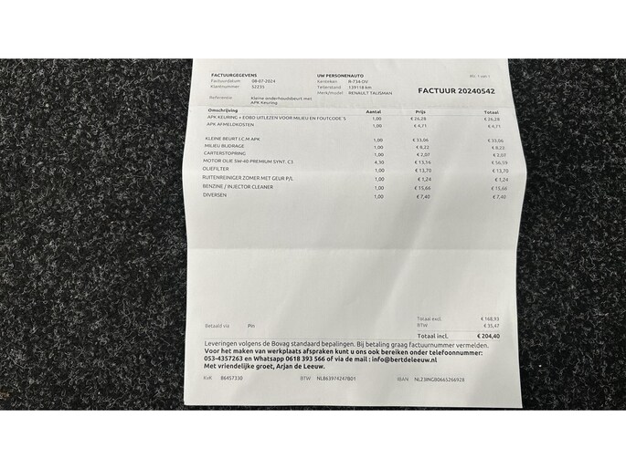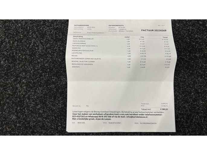 Inclusief onderhoudsbeurt.