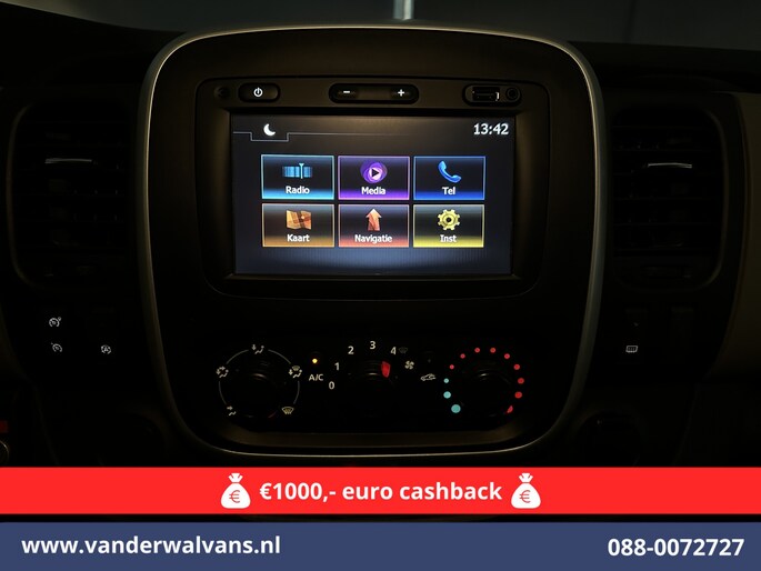 Leuke Renault Trafic L1H1 Euro6 met airconditioning en navigatie. Dealer onderhouden en tevens uitgevoerd met trekhaak, cruisecontrol, parkeersensoren, bijrijdersbank en bluetooth telefoonvoorbereiding.
