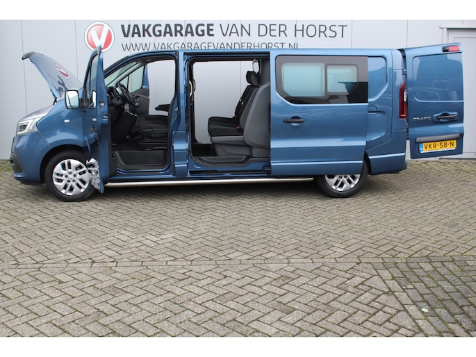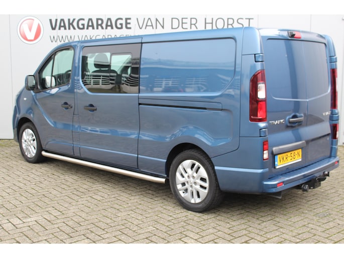 2.0-145pk dCi T29 L2H1 dubb. cabine Comfort. Erg nette Renault Trafic mèt dubbele cabine. Bijrijdersstoel, camera, LED verl., navigatie, tel. voorb., cruise control, airco, metallic lak, schuifdeur li+re, LM wielen, side bars, laadruimte betimmerd, trekhaak etc.