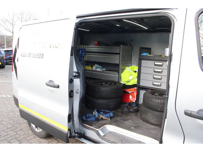 Stijlvolle vormen en een verzorgd interieur maken u meteen duidelijk dat u hier met een Franse auto te maken hebt. Op de teller van deze auto staat slechts 900 kilometer. De aandrijving komt voor rekening van een dieselmotor en een handgeschakelde zesversnellingsbak. Geen achterportier bij deze Renault Trafic. In plaats daarvan een schuifdeur, die in- en uitstappen vergemakkelijkt. De uitmonstering van deze auto wordt gecompleteerd door onder meer LED koplampen, elektrisch bedienbare en verwarmde buitenspiegels, verstelbare lendensteunen en elektrisch bedienbare ramen voor.