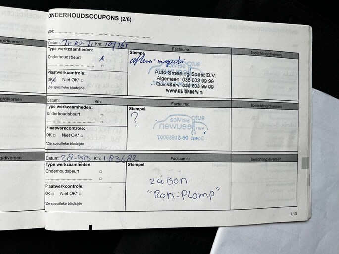 Onderhoudsboekjes: Aanwezig