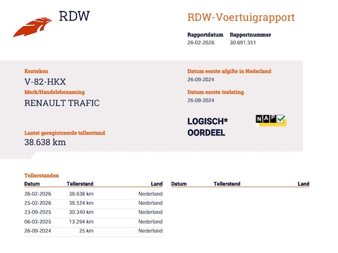 Kilometerstand gecontroleerd