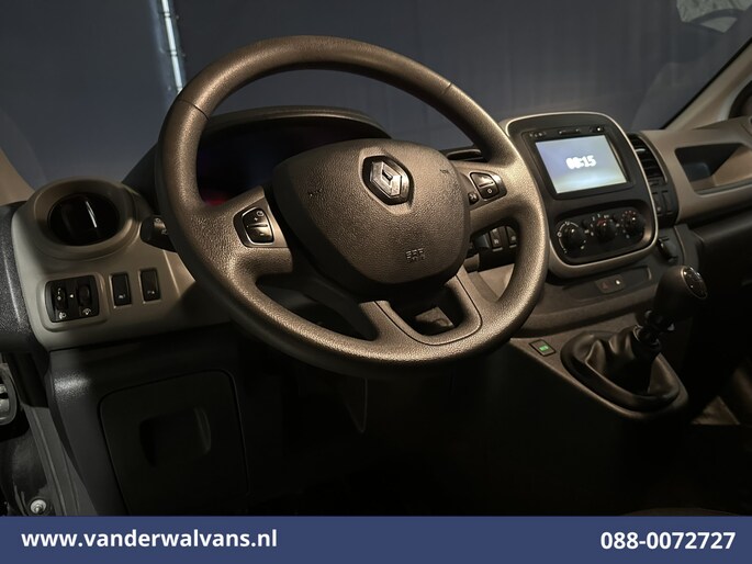 126pk sterke Renault Trafic L1H1 Euro6 met airconditioning en navigatie. Dealer onderhouden en uitgevoerd met trekhaak, cruisecontrol, parkeersensoren, bijrijdersbank en bluetooth telefoonvoorbereiding.