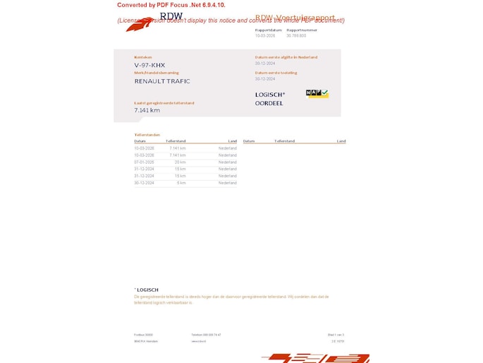 Kilometerstand gecontroleerd