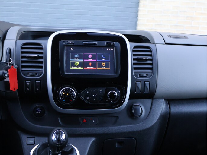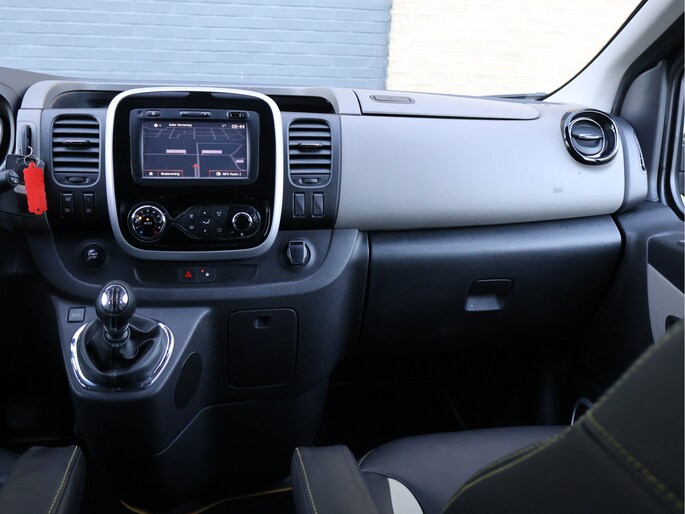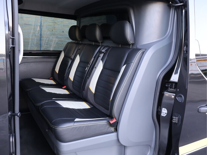 Het interieur is comfortabel en verzorgd ingericht en tilt deze Trafic duidelijk naar een hoger niveau. De lederen bekleding zorgt voor een luxe uitstraling en is tegelijkertijd duurzaam en praktisch in gebruik. De bestuurder beschikt over een in hoogte verstelbare stoel met armsteun en verstelbare lendesteunen, terwijl het lederen stuurwiel, de cruise control en de automatische airconditioning bijdragen aan ontspannen lange ritten. Dankzij keyless entry & start stapt u eenvoudig in en rijdt u weg zonder de sleutel uit uw zak te halen – een premium comfortvoorziening die vooral bij veel in- en uitstappen een groot verschil maakt. Het audio-navigatiesysteem met full map, Bluetooth en DAB-radio wordt versterkt door een hoogwaardig Kicker audiosysteem, wat zorgt voor een krachtige en heldere geluidsbeleving onderweg.
