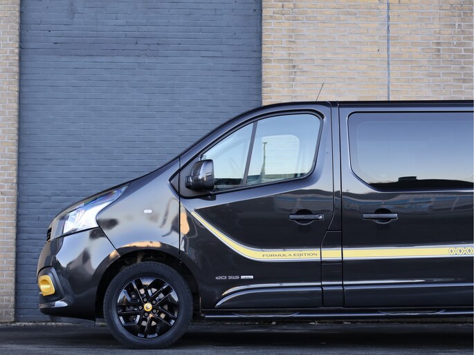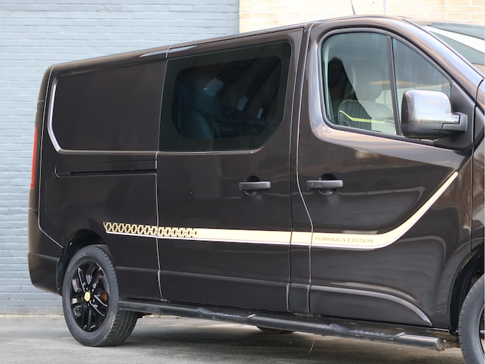 Ook op het gebied van veiligheid en gebruiksgemak is deze Formula Edition zeer compleet uitgerust. Zo is de Trafic voorzien van LED-dagrijverlichting, parkeersensoren voor en achter, achteruitrijcamera, parkeerassistent, ESP, hill hold-functie en adaptieve mistlampen. De 17 inch lichtmetalen velgen, carrosseriekleurige bumpers en spiegels én de gemonteerde sidebars geven de auto een stoere en professionele uitstraling die gezien mag worden.