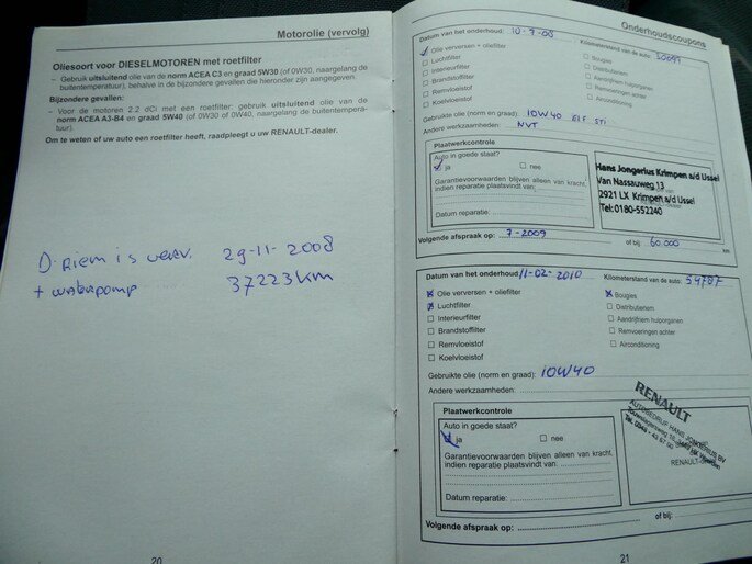 Onderhoudsboekjes: Aanwezig