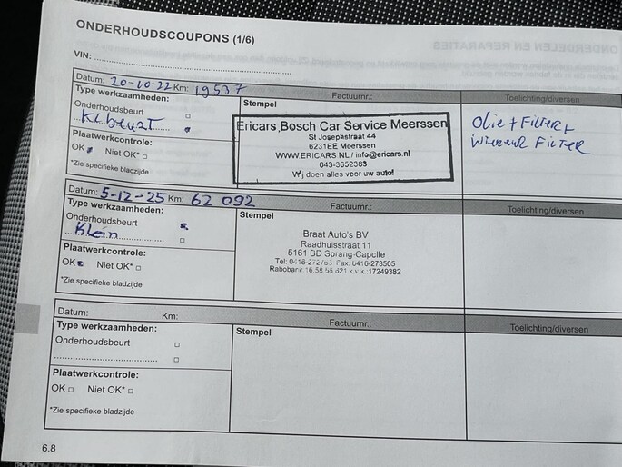Onderhoudsboekjes: Aanwezig