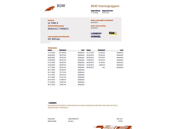 Kilometerstand gecontroleerd