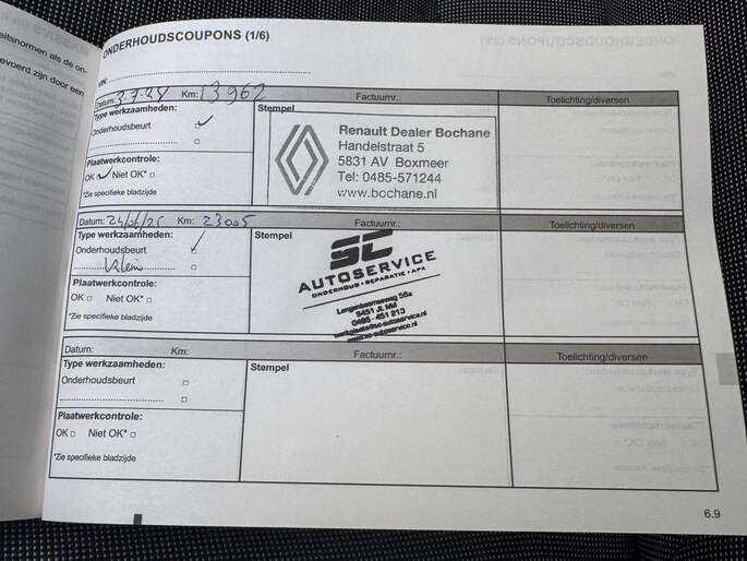 Onderhoudsboekjes: Aanwezig