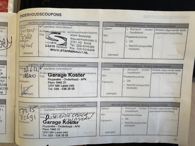 Onderhoudshistorie aanwezig: Ja