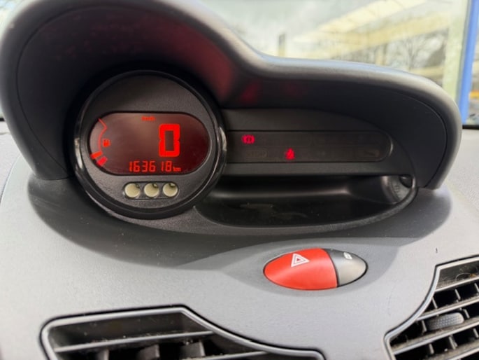 Ook is de Renault uitgerust met: buitentemperatuurmeter, centrale deurvergrendeling met afstandsbediening, bestuurders-informatie-systeem en verstelbaar stuur.