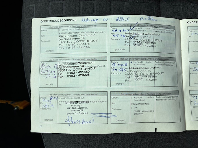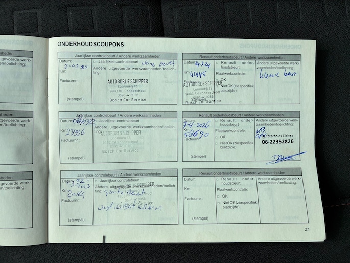 Onderhoudsboekjes: Aanwezig