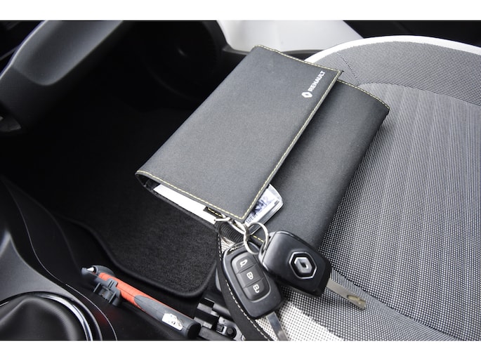 Deze Renault is voorzien van knoppen op het stuur om het audio-installatiesysteem met dab-ontvangst te bedienen. Bij het wisselen van rijbaan kan een dode hoek ontstaan waardoor achterliggers te dichtbij kunnen komen. De achteropkomend verkeer waarschuwing geeft in dat geval automatisch een signaal. Deze auto heeft airconditioning aan boord. Natuurlijk behoren lederen stuur, isofix-aansluiting, centrale deurvergrendeling met afstandsbediening en boordcomputer ook tot de uitrusting van deze complete auto.