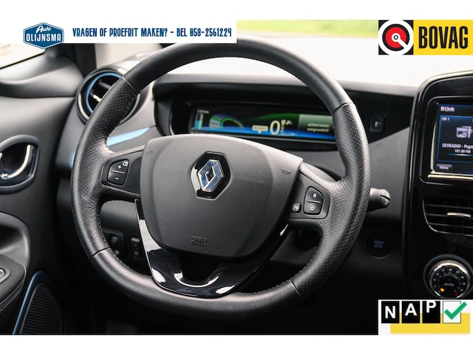 Gemak dient de mens. Dankzij de spraaksturing bedient u de belangrijkste functie met uw stem. Het full map navigatiesysteem loodst u snel naar uw reisdoel. Ook over uw schouder ziet u onderweg niet alles wat er aan de achterzijde gebeurt. Daarom heeft deze Renault Zoe een achteropkomend verkeer waarschuwing. Het comfort wordt verhoogd door de aanwezige automatische airconditioning. In deze Renault kunt u zich concentreren op het verkeer, terwijl de auto de omgeving voor u in de gaten houdt. Een automatisch inschakelbare verlichting zorgt dat de verlichting aangaat als het donkerder wordt - in tunnels bijvoorbeeld - en de regensensor schakelt de ruitenwissers in als het nodig is. U hoeft er niets aan te doen. Deze Renault is voorzien van cruise control, keyless entry, lederen stuur, isofix-aansluiting en centrale deurvergrendeling met afstandsbediening.