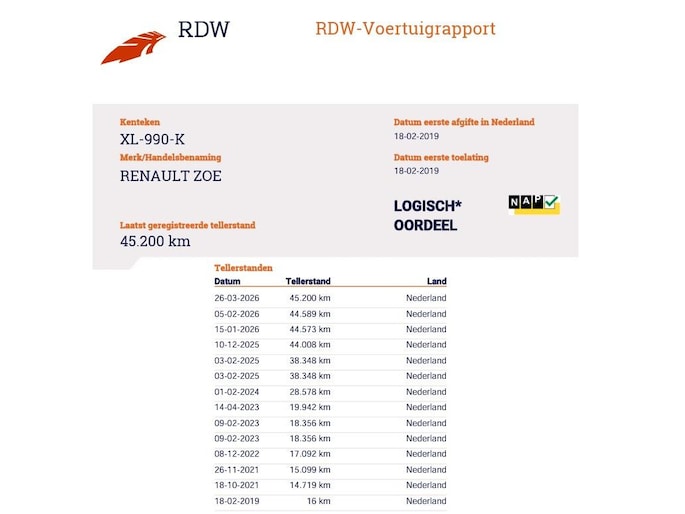 Kilometerstand gecontroleerd