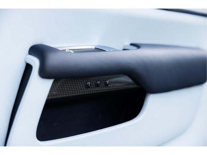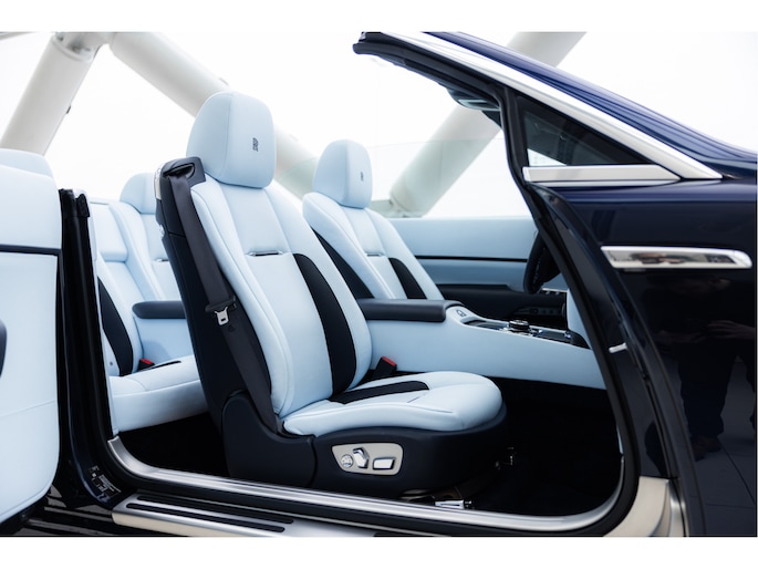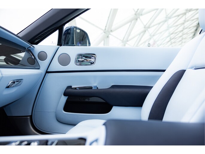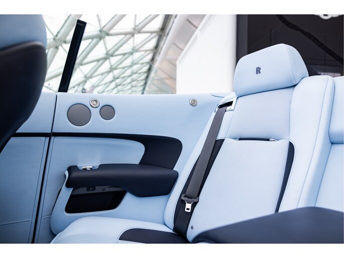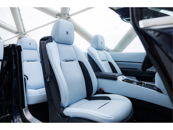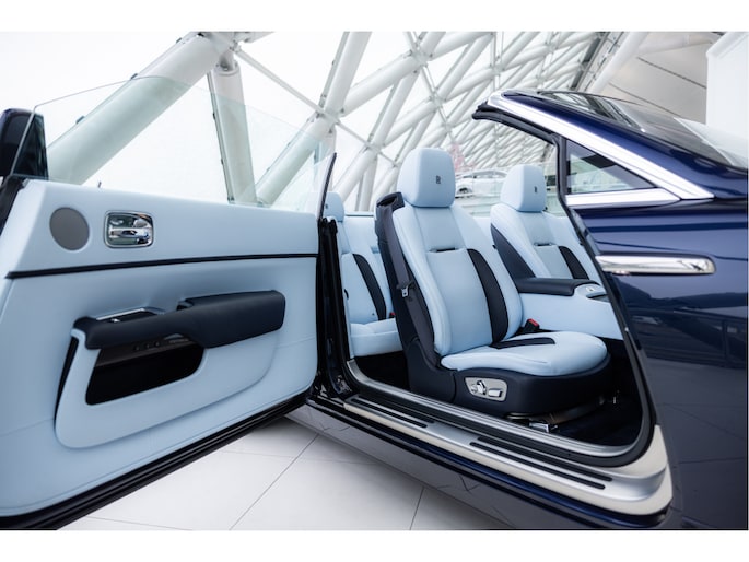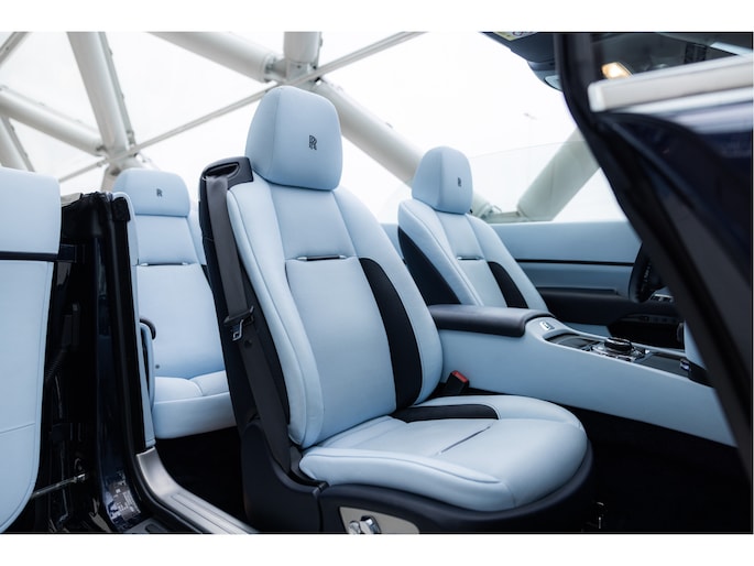 Deze uitvoering is uitgevoerd in diepe donkerblauwe metallic lak genaamd Midnight Sapphire, gecombineerd met een blauwe softtop. Het interieur is uitgevoerd in Bespoke Baby Blue Lederen interieur gecombineerd met Navy Blue. De stoelen zijn verwarmt en geventileerd en bieden veel ondersteuning, ook tijdens langere ritten. De afwerking is zorgvuldig gedaan, met onder andere Rolls-Royce logo's in de hoofdsteunen en een cashmere hemelbekleding en uiteraard de wollen mattenset.