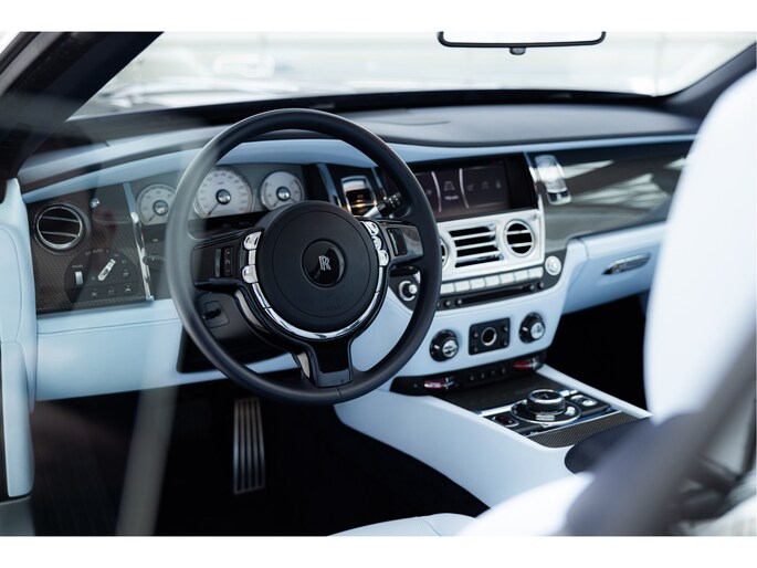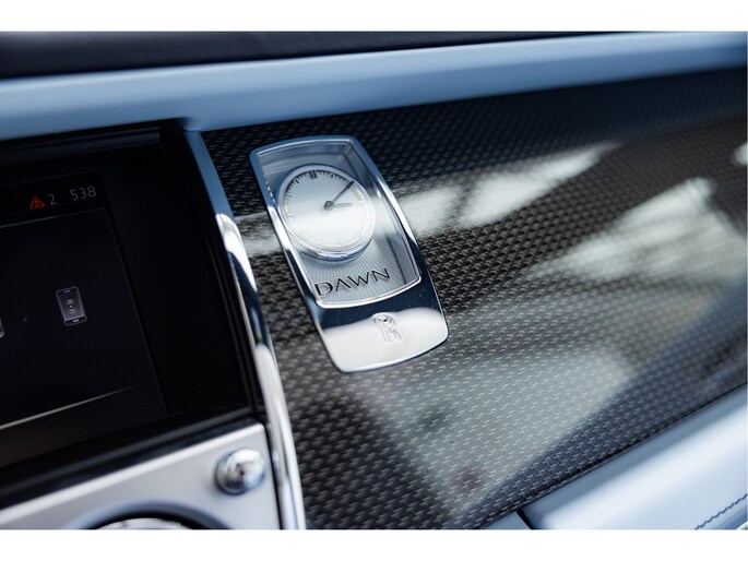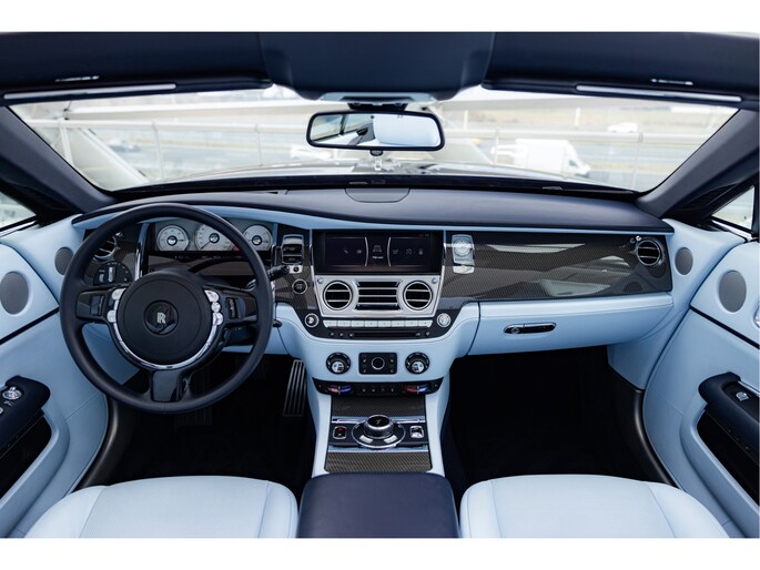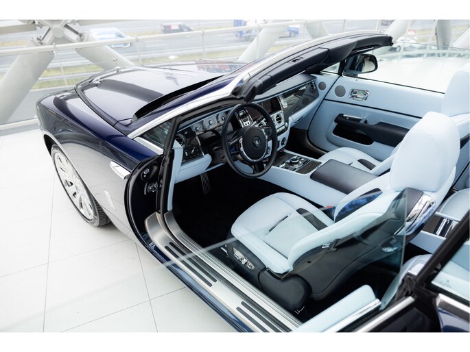 Zodra het dak open gaat, verandert het karakter van deze Rolls-Royce Dawn direct. Het elektrisch bediende cabriodak opent en sluit snel en geruisloos, waardoor u zonder onderbreking kunt blijven rijden. Het is een auto die gemaakt is om ontspannen te gebruiken, met comfort als uitgangspunt.