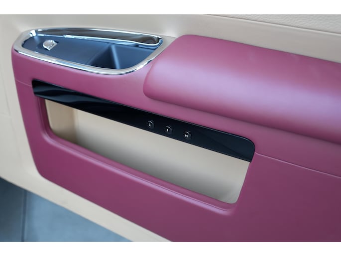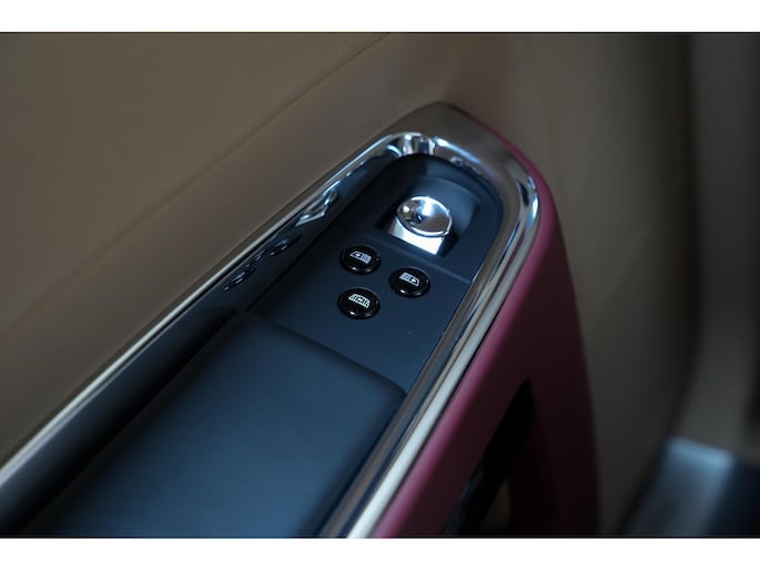 Binnenin ervaar je de ware essentie van Rolls-Royce. Het interieur is afgewerkt met de mooiste materialen: zacht leder, handgepolijst hout en verfijnde details die de sfeer van een exclusieve lounge oproepen.