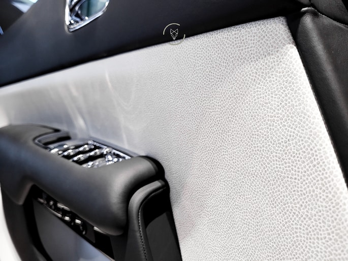 Het interieur voelt als een exclusieve lounge. De Starlight hemel brengt een bijna magische sfeer in het donker en benadrukt de rust die alleen een Rolls Royce biedt. De Bespoke afwerking laat zien dat deze auto met zorg en aandacht is samengesteld tot een geheel dat nergens standaard aanvoelt. De cabine is een wereld van zachtheid, stilte en perfectie.
