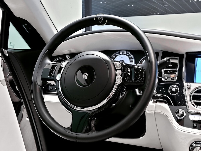 De Driving Assistant en het head up display maken elke rit moeiteloos, terwijl de volledig gedocumenteerde historie zekerheid geeft die bij een auto van dit niveau hoort. De tweeentwintig inch wielen versterken de aanwezige uitstraling zonder de verfijning van de Wraith te doorbreken.