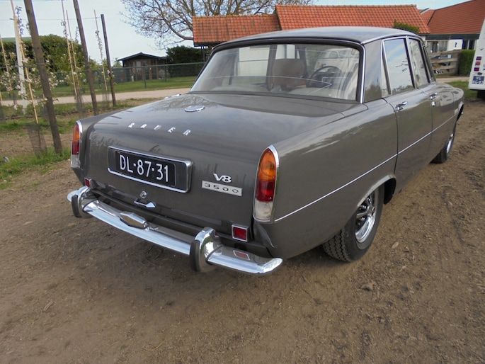 Mooie en harde Rover 3500 V8 Automaat op LPG. Zeer fijn rijdende P6 uit de eerste serie. Gezonde techniek, de V8 slaat direct aan en loopt zijdezacht en vol levenslust! Het chassis is keihard en zover ik kan zien ongelast, geen rare lekkages of ander onheil. De carrosserie ziet er nog netjes uit voor haar leeftijd met een paar plekjes. Samen met haar doorleefde interieur een heerlijke rijdersauto, zeker geen trailer-queen maar een degelijke auto welke bedoelt is waar zij voor gemaakt is.....rijden en genieten!! Voorzien van prachtige Rostyle wielen met Vredestein Sprint Classic banden.