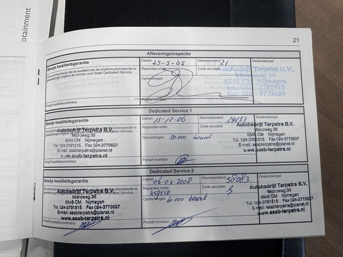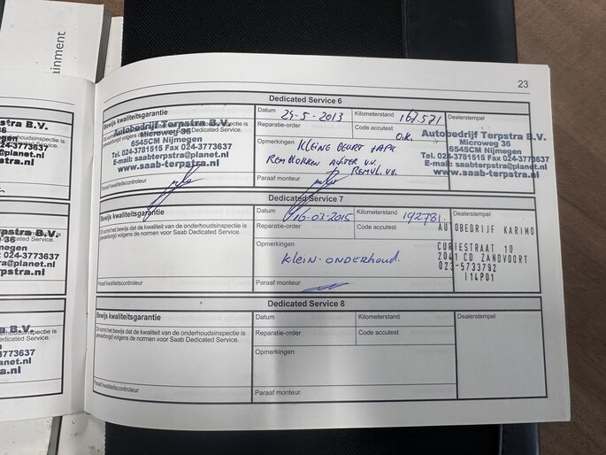 Onderhoudsboekjes: Aanwezig