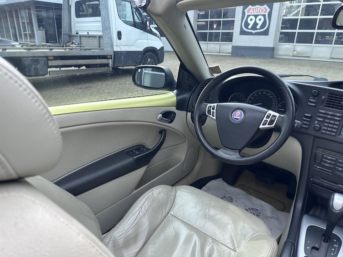 Zodra de zon zich laat zien, kunt u heerlijk genieten achter het stuur van deze cabriolet. Uw nieuwe auto staat klaar voor vertrek. Stap gerust in, deze Saab 9-3 Cabrio heeft 286492 kilometer gelopen en is van het bouwjaar 2005. Hij heeft een benzinemotor en een automatische transmissie. Het lederen interieur zorgt voor een klasse uitstraling. Met het elektrisch bedienbare dak verandert u deze cabrio in luttele seconden in een auto voor zonaanbidders.