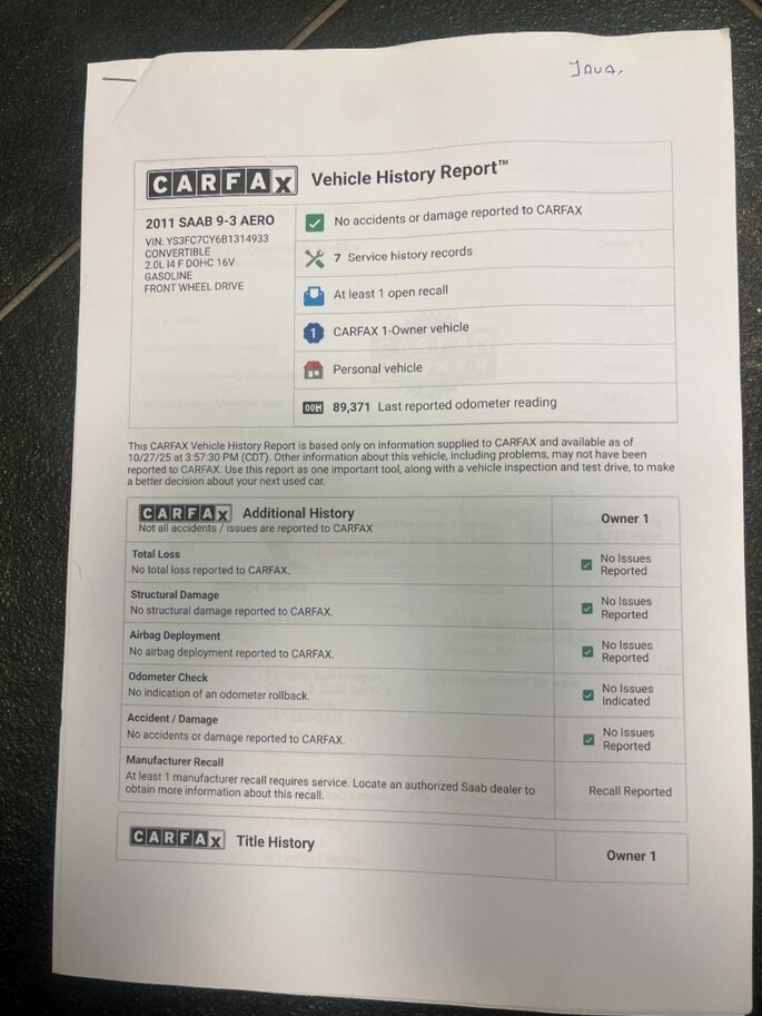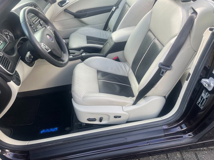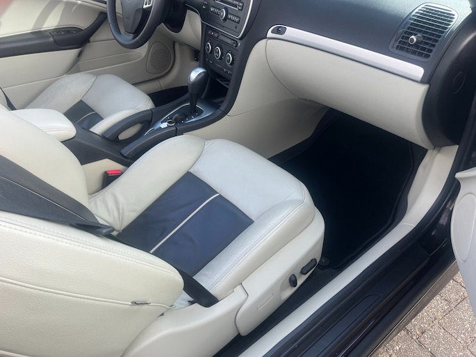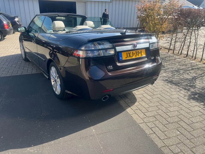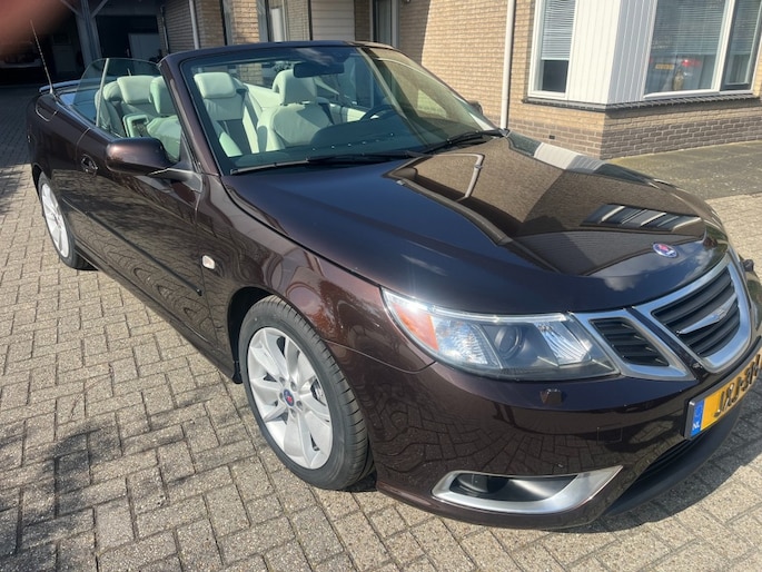 Aangeboden: een stijlvolle en sportieve Saab 9-3 Aero Cabriolet in de bijzondere kleur Java Brown De lak heeft een diepe, metallic glans die afhankelijk van de lichtinval varieert van donkerbruin tot bijna zwart. Omdat Saab in 2011 failliet ging, zijn er slechts een beperkt aantal exemplaren in deze kleur geleverd en deze heeft ook nog eens een de originele beige kap in combinatie met de Aero, beige met zwart leer is dit wel een hele mooie combi. De auto is uitgerust met de krachtige en soepele 2.0T Aero Turbo motor met automaat, die zorgt voor een prettige rijervaring met voldoende vermogen wanneer dat nodig is. Hij ziet er van binnen en buiten zeer goed uit (bijna als nieuw) Banden zijn nieuw van Vredestein We hebben hem zelf van de eerste en enige eigenaar gekocht in Florida (USA) Ook hebben we er een carfax bij zonder issues. Prijs is inclusief BTW ideaal als young timer te gebruiken als onze regering als nog deze regeling weer doorzet. Km stand is 89000 mls = 142000 km Dit is ook één van de door ons zelf geïmporteerde Saab’s uit Amerika en we hebben er meerdere op voorraad. Ook zijn er nog verschillende cabrio's onderweg. Het is voor ons een uitdaging om auto's van het merk Saab te zoeken die eruit als nieuw en waarvan alle historie bekend is. De auto's worden geleverd met een goede garantie en een onderhoudsbeurt. Ook kunnen eventuele extra's op verzoek monteren, voor zover dit nog niet op de auto aanwezig is. bv Android radio, park distance, navigatie en of een trekhaak. WE KRIJGEN OOK NOG EEN HELE MOOIE GELE CABRIO BINNEN> Inruil van een auto of motor is altijd bespreekbaar.