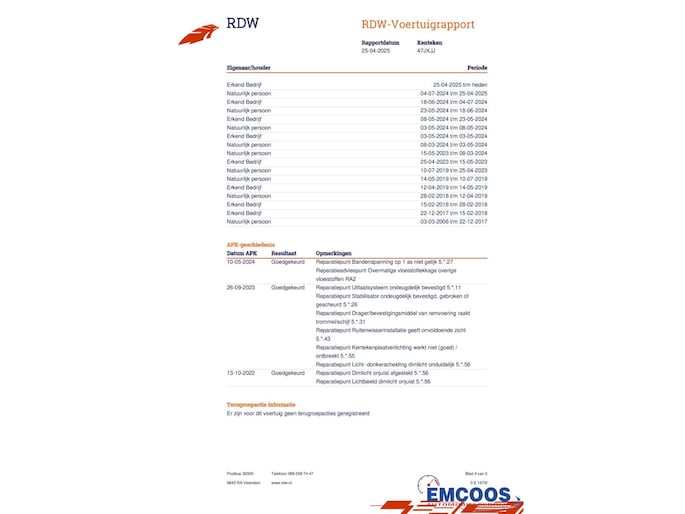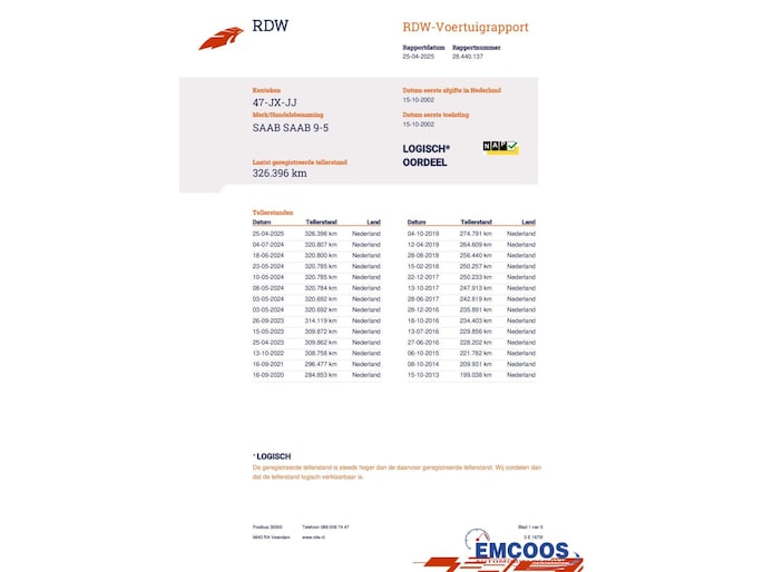 Kilometerstand gecontroleerd
