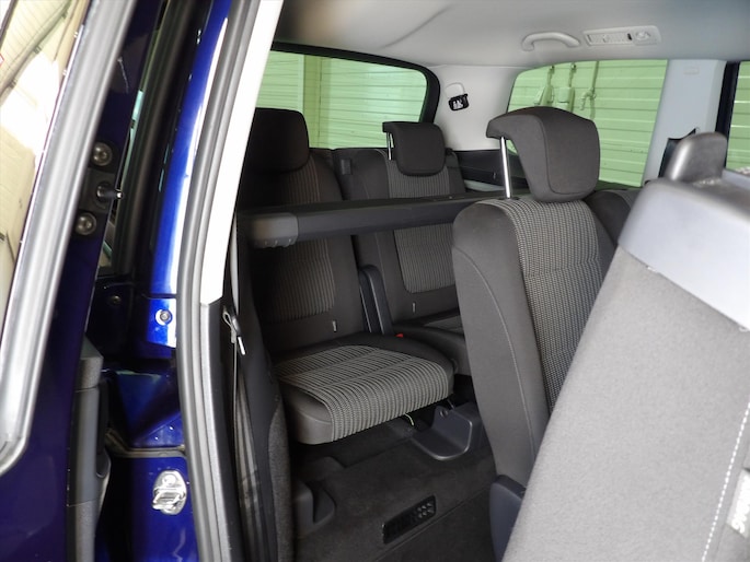- Drie individuele stoelen op tweede zitrij verschuifbaar met Easy Fold functie
